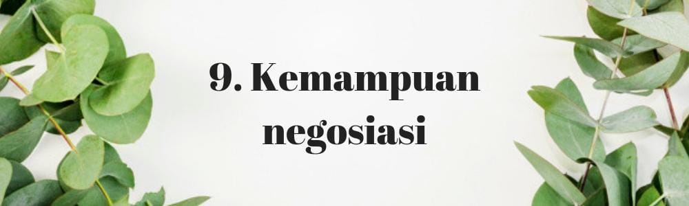 Setiap orang wajib punya keahlian bernegosiasi. Kalau di perusahaan ini memang pekerjaan divisi bisnis. Untuk yang akan datang, kemampuan ini diperlukan di semua bidang. Tanpa disadari kalau setiap hari kamu akan bernegosiasi dengan orang. Misalnya, memutuskan janjian untuk bertemu. Dalam perjalanan karier juga kamu akan bernegosiasi untuk kesejahteran diri sendiri dengan cara yang positif.