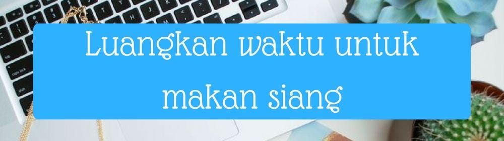 Jika kamu sakit, maka pekerjaanmu juga nggak akan selesai. Makan siang itu sangat penting untuk memberikan nutrisi bagi otak dan tenaga bagi tubuh untuk bekerja. Pergilah ke kantin atau tempat makan supaya kamu bisa sambil mengistirahatkan diri.