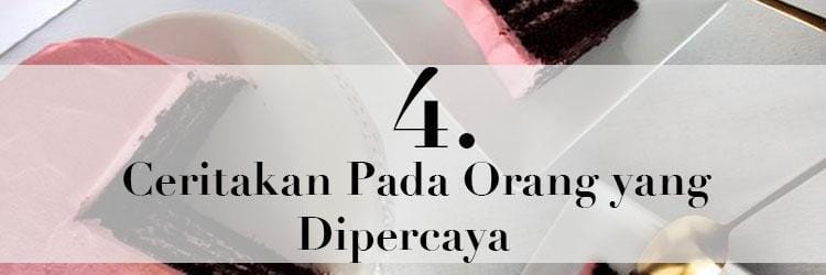 Menjadi korban pelecehan bisa memberikan tekanan psikologis. Kamu harus membagikan cerita tersebut pada orang yang sangat kamu percaya sehingga bisa membuat diri sendiri lega. Orang itu bisa jadi orangtua, sahabat, atau pasangan.