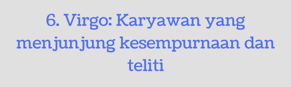 Perfeksionis adalah kata yang tepat untuk mencerminkan sosok Virgo. Ia adalah orang yang teliti dan mendedikasikan dirinya pada pekerjaan sehingga sering dianggap sebagai workaholic. Ia memimiliki standar yang tinggi, bahkan beberapa orang menganggap itu nggak realistis. Selain mudah mengkritik pekerjaanya sendiri, ia pun mudah menunjuk kesalahan orang lain sampai membuat tersinggung. Sebagai pemimpin tim, ia akan selalu mendorong anggotanya untuk dapat mengerahkan seluruh kualitas terbaiknya sehingga dapat memberikan hasil yang terbaik pula.