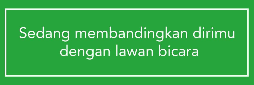 Ketika kamu merasa lawan bicaramu levelnya berada diatas maka kamu pun berusaha mengimbanginya. Menjaga performa dengan cara mengimbangi topik yang ia bicarakan akan kamu lakukan. Namun terkadang kamu berkata suatu hal yang sebenarnya belum kamu lakukan supaya nggak diremehkan olehnya.