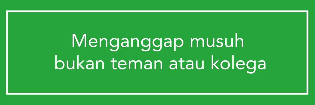 Ketika kamu mendadak nggak atraktif terlintas dalam pikiran bahwa ia bisa menjadi musuh dan teman sekaligus. Kamu pun mulai menilai dan berasumsi sendiri terhadapnya dan bisa saja kamu menunjukkan sikap yang kurang menyenangkan. Sebenarnya perlakuan terhadap orang lain bisa jadi cerminan sikapnya kepadamu jadi lebih baik kamu bersikap terbuka dan menunjukkan bahwa kamu adalah teman dan kolega yang baik.