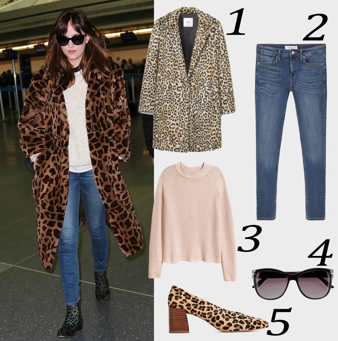 Dakota Johnson tampil 'gahar' dalam balutan motif leopard yang seductive. Kombinasi matching coat dengan sepatunya wajib kamu tiru nih Bela. Nah, untuk meringkan tampilan, ia memilih sweater dan celana jeans yang kasual. Jangan lupa pakai kacamata hitam untuk menambahkan kesan elegan.