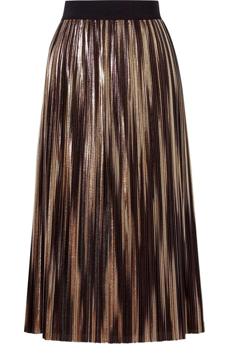 Mikaela pleated two-tone lamé midi skirt, Alice + Olivia, $350.00