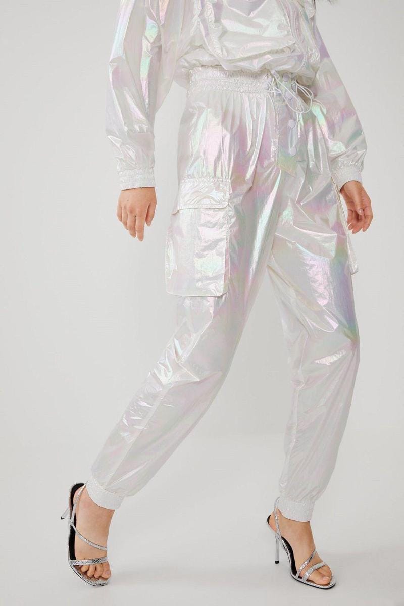 Iridescent - effect trousers, ZARA, IDR 599.900