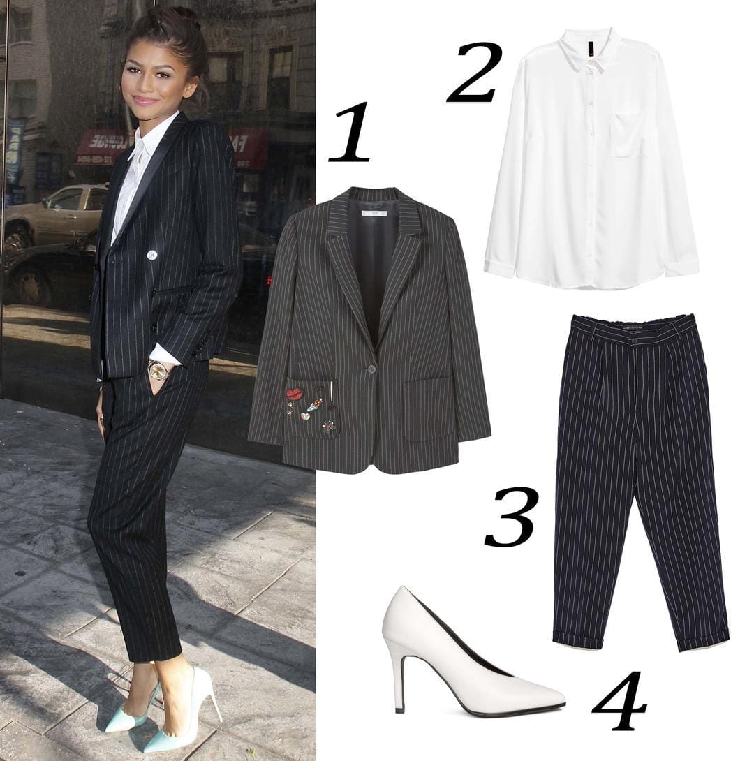 Bosan dengan gaya girlie yang aman?! Mungkin gaya Zendaya yang satu ini bisa jadi pilihan kamu. Dimana ia tampak maskulin dalam balutan setelan jas bermotif pinstripe yang berhasil ia kombinasikan dengan heels putih yang chic. Cocok untuk kamu yang ingin terlihat profesional.