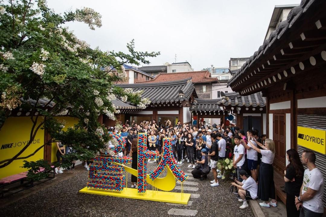 Di tengah musim panas Korea Selatan yang dinamis, Popbela.com diajak oleh Nike Running mengunjungi The Hanok Smiths Likes, sebuah restoran ternama di bilangan Samcheong-dong, Seoul, yang disulap menjadi markas pertama Nike Joyride di Korea Selatan. Dekorasi tradisional Korea yang kental dengan bangunan kayu dipadukan dengan nuansa penuh warna dan energi Nike Joyride berwarna merah, biru dan kuning. Pada bagian dalam bangunan, terdapat dinding dengan kapsul-kapsul raksasa warna merah dan biru berhias angka, yang ternyata berisi sepasang sepatu Nike Joyride untuk 85 media dan influencer yang hadir dari seluruh dunia.