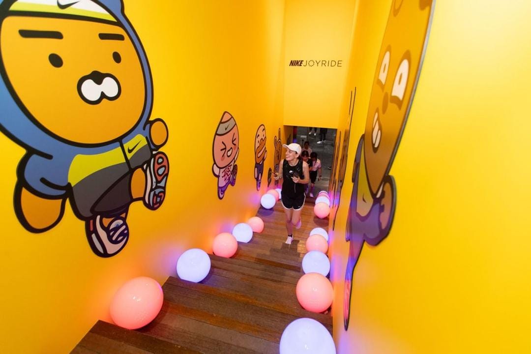 Setelah berlari kurang lebih 2 KM lagi, kami sampai di The Culture Space, Insa-dong, Seoul. Di sinilah markas ke tiga dan terakhir Nike Joyride di Korea Selatan bersemi! Saya tak memungkiri, rasanya seakan tak memiliki tenaga tersisa setelah berlari sepanjang 4,5 KM mengelilingi kota Seoul. Walaupun begitu, telapak kaki saya terjaga kenyamanannya berkat Nike Joyride yang sudah menemani. Di The Culture Space, kami disambut dengan makanan dan minuman segar, serta berbagai permainan menarik yang kental dengan keramahan Nike. Semuanya masih dibalut nuansa merah, biru dan kuning yang menjadi dasar warna Nike Joyride di musim panas ini.