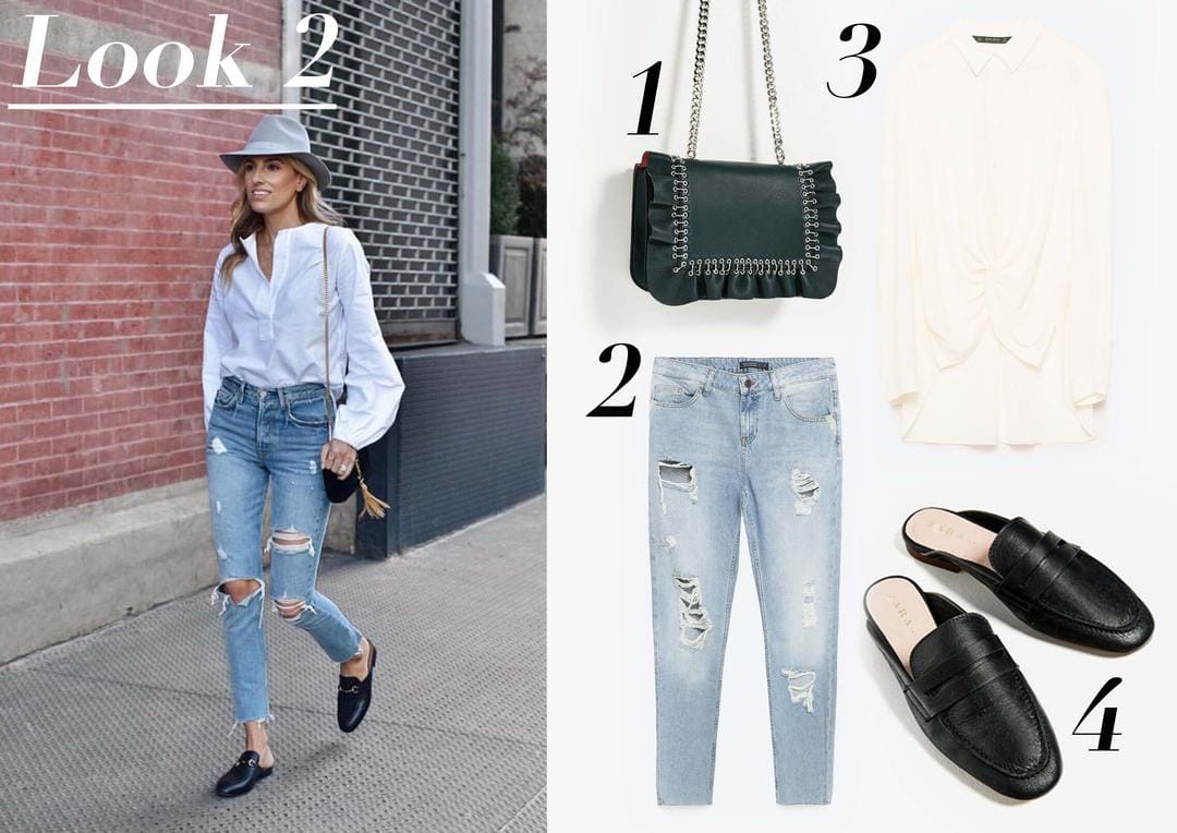 SEE NOW BUY NOW: 1. Scarf, ZARA, IDR 129,900; 2. Oversized shirt, ZARA, IDR 899,900; 3. Moms ripped denim, ZARA, IDR 899,900; 4. Sunglasses, ZARA, IDR 359,900; 5. White sneakers, ZARA, IDR 899,900
