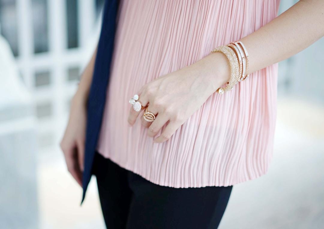 Kamu nggak akan pernah salah dengan pilihan aksesoris gold dan berstruktur. Kombinasikan outfit yang simple dengan menambahkan aksen gold yang akan membawa tampilanmu jauh berbeda. Namun, kamu harus tetap ingat, everything is about the right balance.