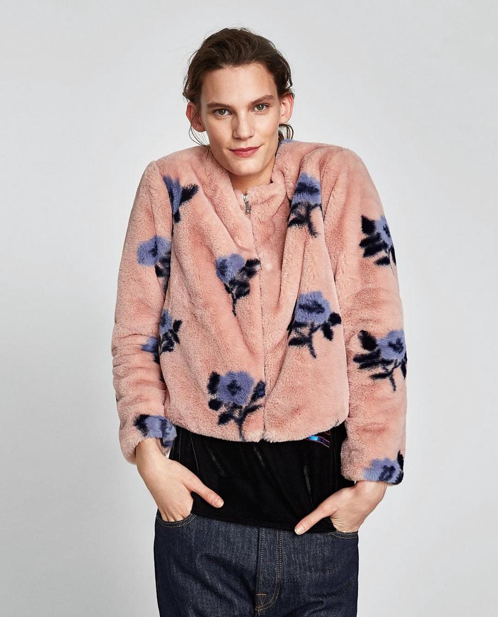 Jaket bulu floral, ZARA, IDR 599,900