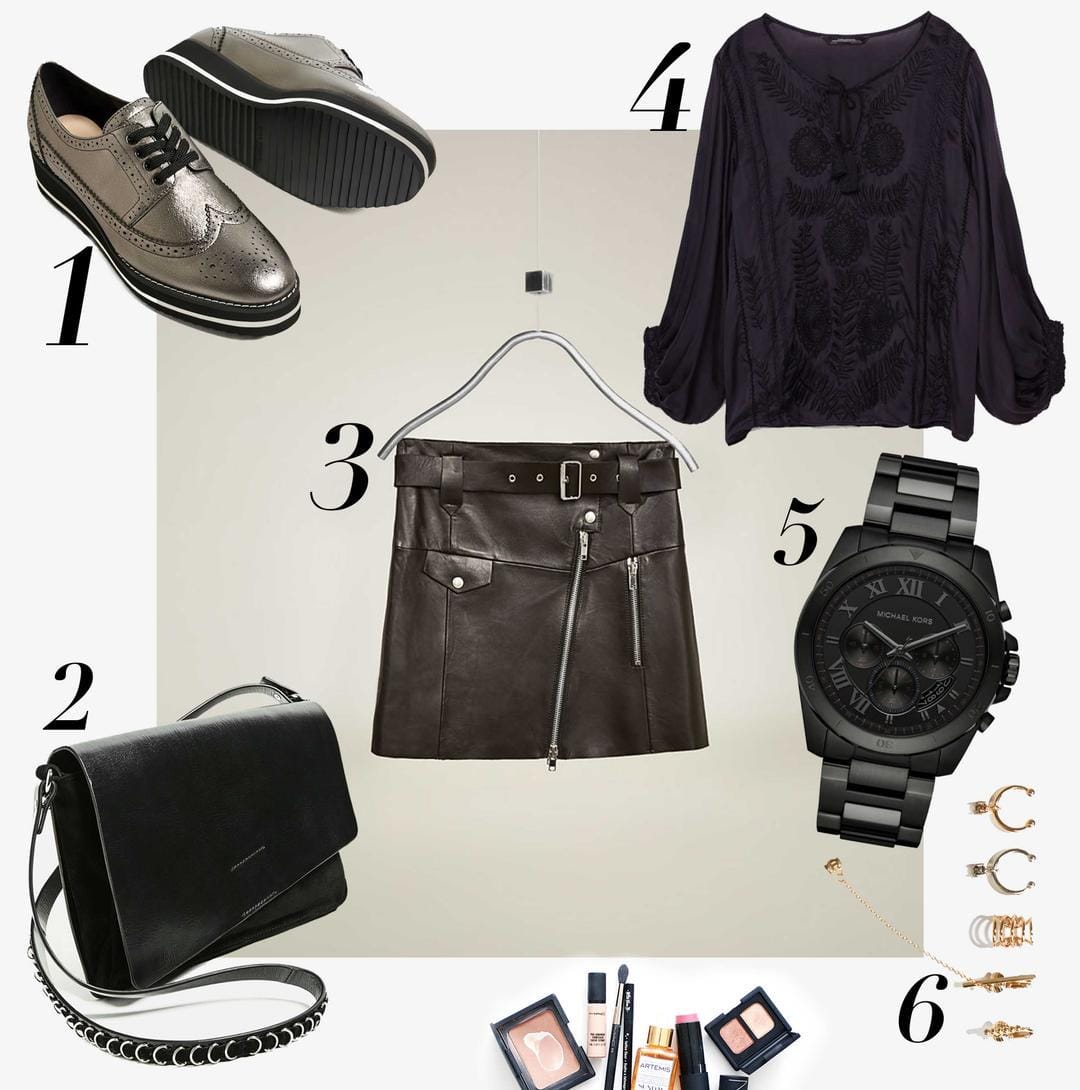 Happy weekend, Bela! Yuk tampil seru dengan mix and match leather skirt with buckle dengan embroidery top di hari Sabtu. Untuk kamu yang lagi ingin tampil keren tapi santai, gaya ini akan membuat kamu tetap terlihat chic dan stylish. Perpaduan warna monokrom akan membuat total look kamu terlihat chic, yang ditambah dengan statement oxford shoes silver. Lengkapi total look kamu dengan messenger bag dengan chained detail dan crhono watch dari Michael Kors. Jangan lupa untuk mix and match accessories untuk menambah kesan fun. Happy Saturday, Bela!