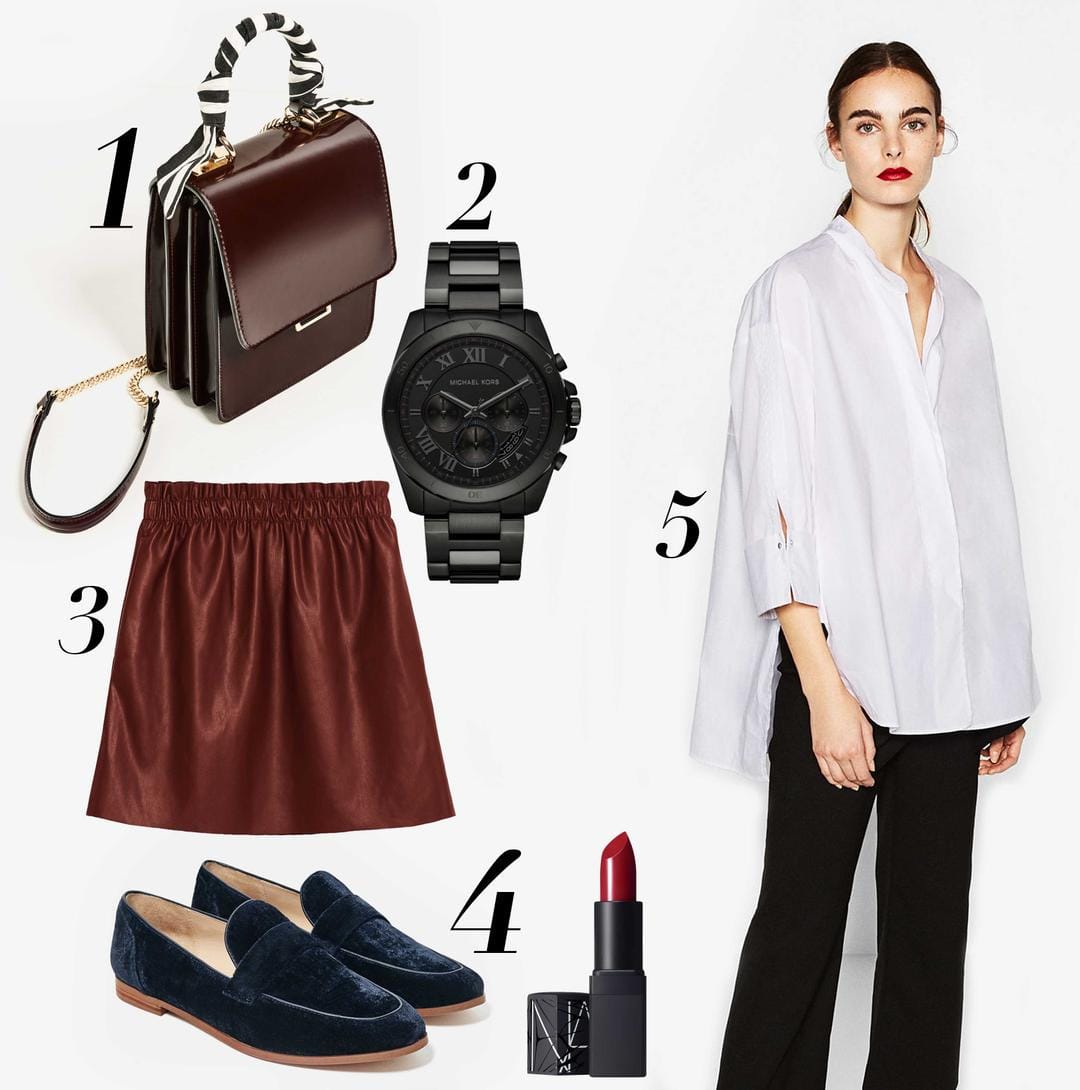 Happy weekend, Bela! Yuk tampil super keren di hari Sabtu dengan mix and match oversized shirt dan faux leather skirt yang akan membuat gaya kamu terlihat kasual namun edgy. Oversized shirt akan memberikan style pada outfit menjadi lebih chic. Sentuhan velvet loafers pada outfit akan memberikan finishing stylish pada total look kamu. Lengkapi juga dengan mini leather satchel dan chrono watch dari Michael Kors. Now you are ready for Saturday!