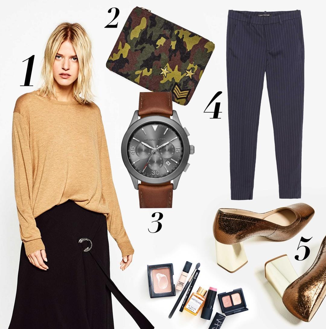 Di hari Selasa ini, kamu bisa menemukan inspirasi OOTD dengan mix and match stripe trousers dan oversized sweater. Aksen oversized yang dipadukan dengan toursers akan membuat total look kamu menjadi lebih sleek dan edgy. Berikan sentuhan statement shoes pada look kamu. Gold plated block heels akan memberikan kesan yang stylish, ditambah dengan army clutch dan leather chrono watch dari Michael Kors. Happy Tuesday, Bela!