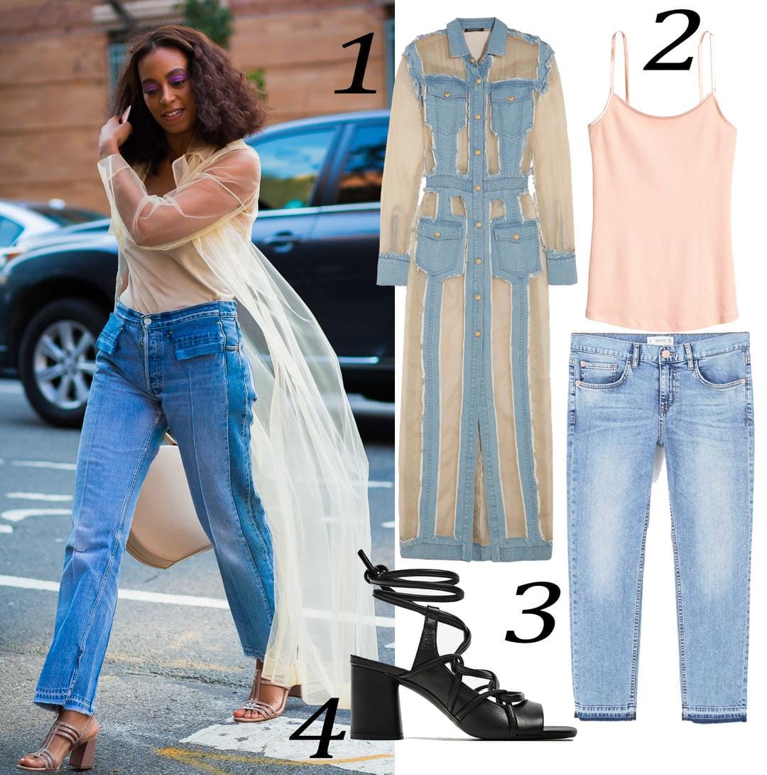 Selalu tampil unik dan punya cara pendekatan fashion yang berbeda dengan sang kakak, gaya Solange selalu bisa diandalkan. Kali ini gayanya super keren dalam balutan busana sheer yang trending. Yang membuat gaya ini tambah menarik adalah cara Solange yang mempresentasikannya secara street dengan memakai celana jeans. Gaya kasual seperti ini dijamin akan mencuri perhatian!
