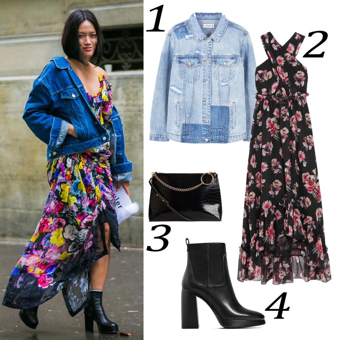 Nah, kalau kemarin kamu sudah melihat bagaimana caranya tampil tomboy walau mengenakan busana floral, sekarang eksplor lagi yuk aksen floral yang masih trending selama musim panas ini. Untuk yang sekarang mix n match-nya lebih aman namun tetap fashionable, yaitu dengan menggabungkan dress floral dan denim jacket. Triknya adalah pilih dress floral yang ringan dan flowy untuk menciptakan sebuah drama dari look kamu. Untuk lebih edgy pakai juga sepatu boots favorit kamu.