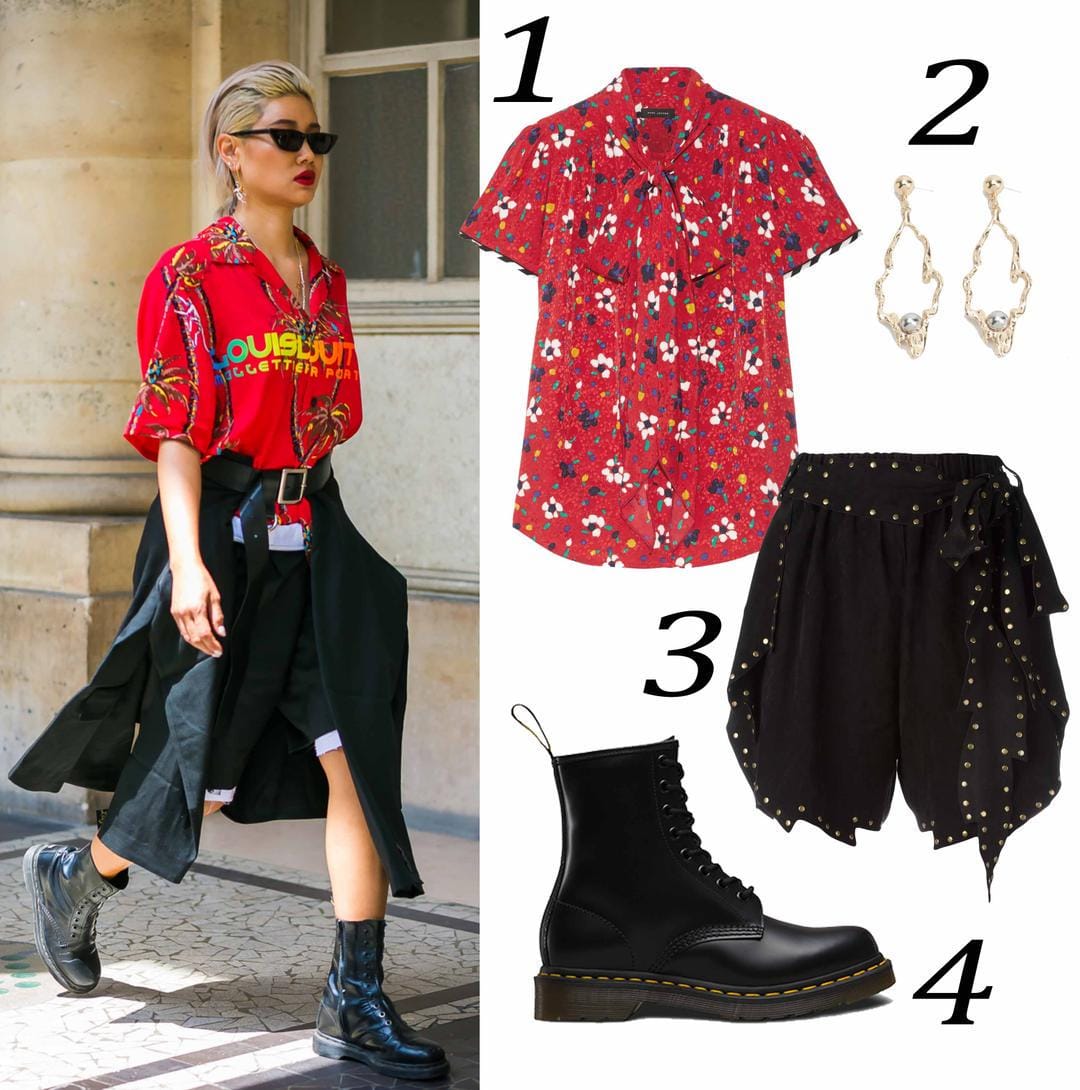 Pakai busana bernuansa floral enggak harus bawaannya kudu feminin. Kalau kamu mau lebih berani, tampil tangguh seperti Yoo Ahn bisa kamu coba nih. Kombinasikan atasan floral kamu (pilih warna yang bold) dengan celana pendek polos, namun yang jadi key pieces-nya disini adalah alas kaki yang statement - yaitu combat boots. Gaya nyentrik ini tepat mewakili sentuhan tomboy yang chic.