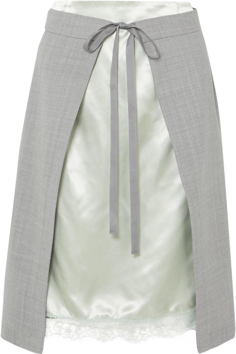 Layered lace-trimmed satin and woven skirt, MM6 Maison Margiela, $290.85
