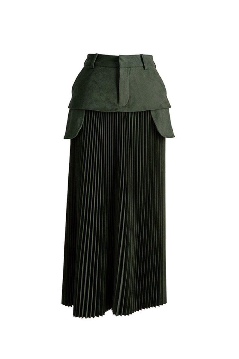 Olive green exposed pocket pleated skirt, Patrick Owen, IDR 5.855.500