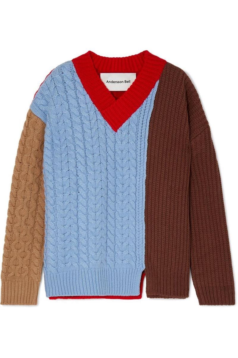 Oversized color-block wool-blend sweater, Andersson Bell, $425.18