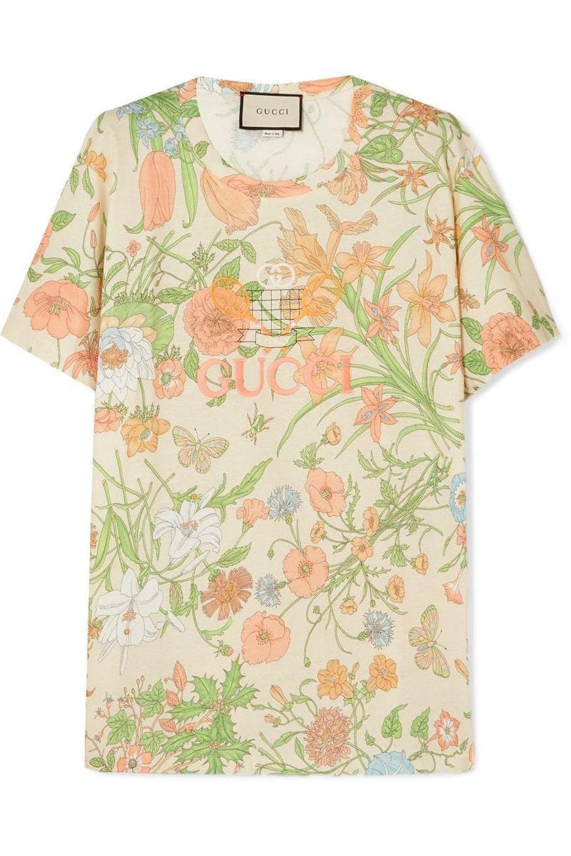 Embroidered floral-print cotton-jersey T-shirt, Gucci, $489.02