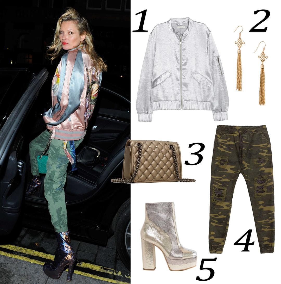 Menggabungkan dua statement pieces memang nggak mudah. Tapi berkat Kate Moss semua terlihat super easy. Dimana satin bomber dan motif camo yang masih hits, ia presentasikan dengan gaya yang begitu unik nan nyentrik. Untuk semakin mencuri perhatian jangan lupa juga mengenakan sepatu platform metalik. Overall, gaya ini bisa menjadi opsi menarik untuk kamu tampil mewah tapi tetap santai. Setuju?