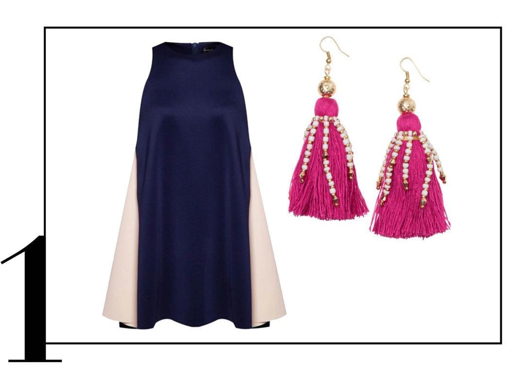 GET THE LOOK: Colorblock dress, Something Borrowed, IDR 179,000; Wood tribal earrings, ZARA, IDR 299,900