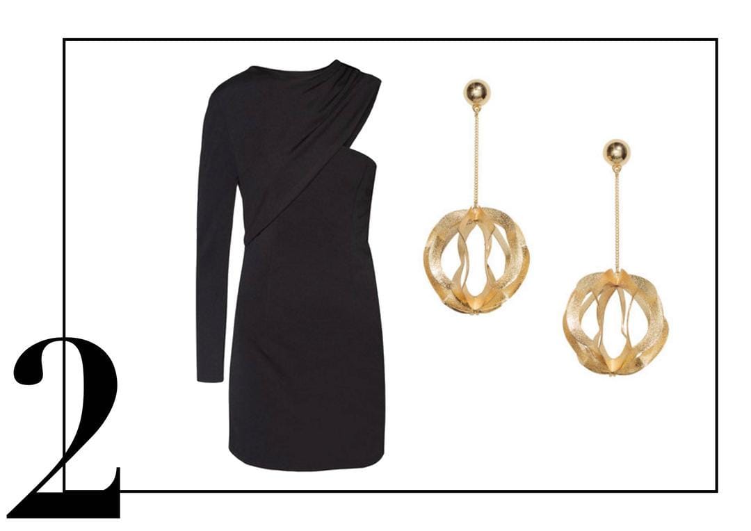 GET THE LOOK: Black assymetric dress, Something Borrowed, IDR 129,000; Gold dangled earrings, H&M, IDR 149,900