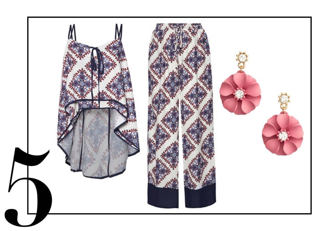 GET THE LOOK: Printed top, Something Borrowed, IDR 279,000; Printed pants, Something Borrowed, IDR 249,000; Floral earrings, H&M, IDR 69,900