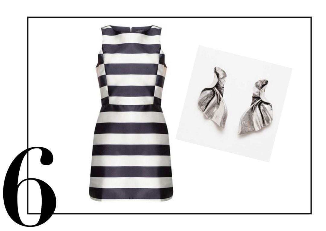 GET THE LOOK: Stripe saten dress, ZALORA, IDR 399,000; Steel geometric earrings, ZARA, IDR 299,900