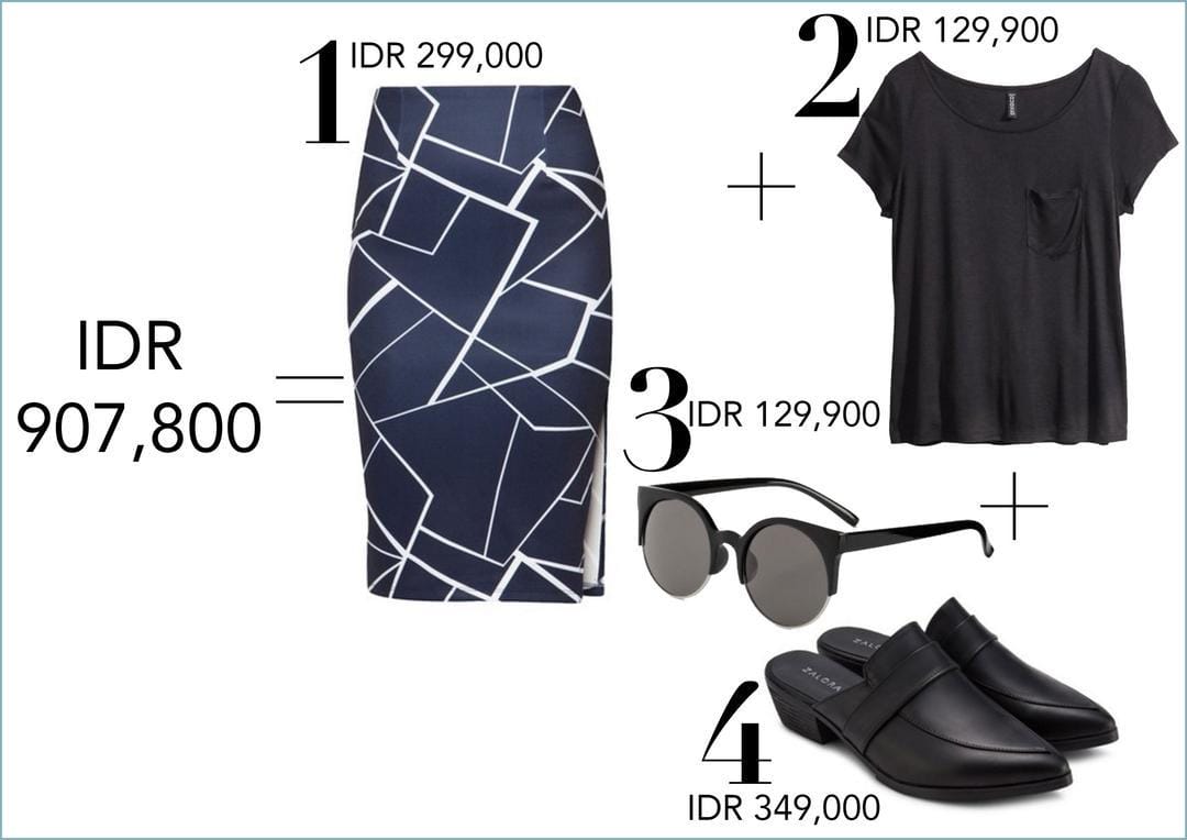 1. Geometric pencil skirt, Something Borrowed, IDR 299,000