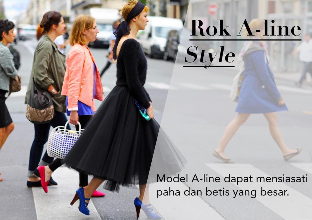Suka nggak percaya diri untuk memakai rok karena betis yang besar. Padahal kmau bisa menyiasatinya dengan model A-line atau circle yang bisa menyamarkan bentuk perut dan paha besar. Jadi bisa memberikan kesan ramping pada keseluruhan penampilanmu dengan model yang simpel dan melebar pada bagian bawahnya.