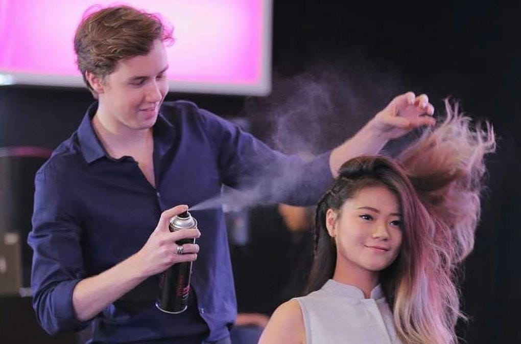 Aksi profesional hairdresser, Kiefer Lippens, yang mendemonstrasikan tata rambut sehari-hari yang bersentuhan runway ready!