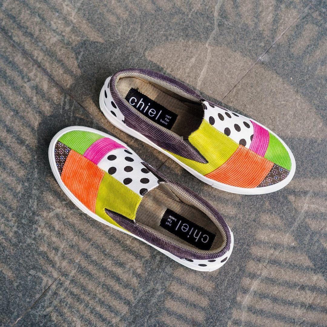 Brand Chiel yang punya slogan "Not for basic" ini punya ciri khas desain sandal dan sepatu yang warna-warni banget. Desainnya yang feminin dan kasual membuat siapa pun bisa memakai. Misalnya saja slip on "Arka" yang satu ini. Dengan paduan warna dan motif unik, cocok banget dipakai saat tampil minimalis dan sneakers Arka jadi statement penampilanmu.