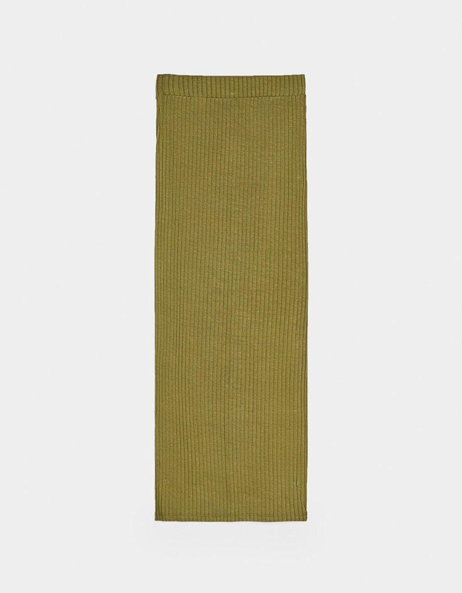 Ribbed midi skirt, Bershka, IDR 299,900
