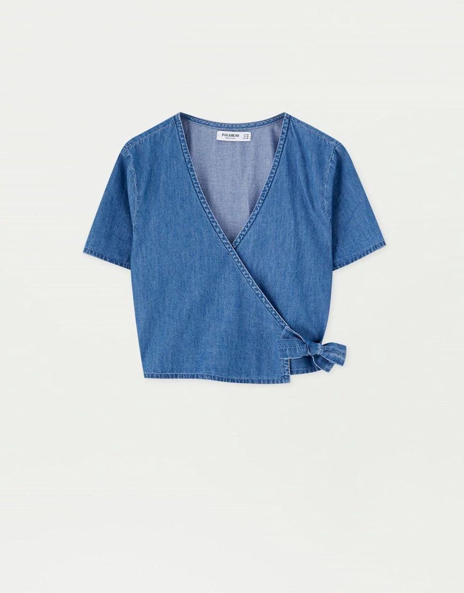 Denim shirt with tied bow, Pull & Bear, IDR 359,900