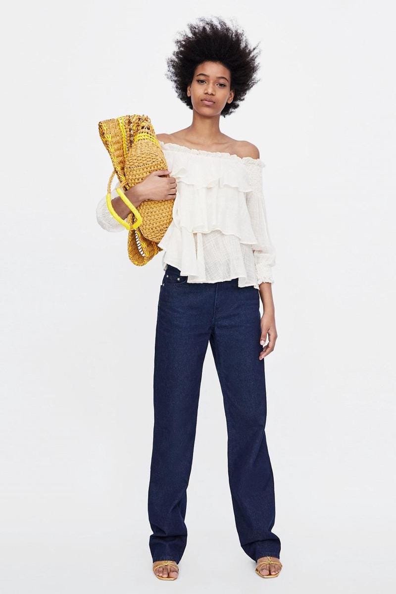 Zip-up denim pinafore dress, Stradivarius, IDR 559,900