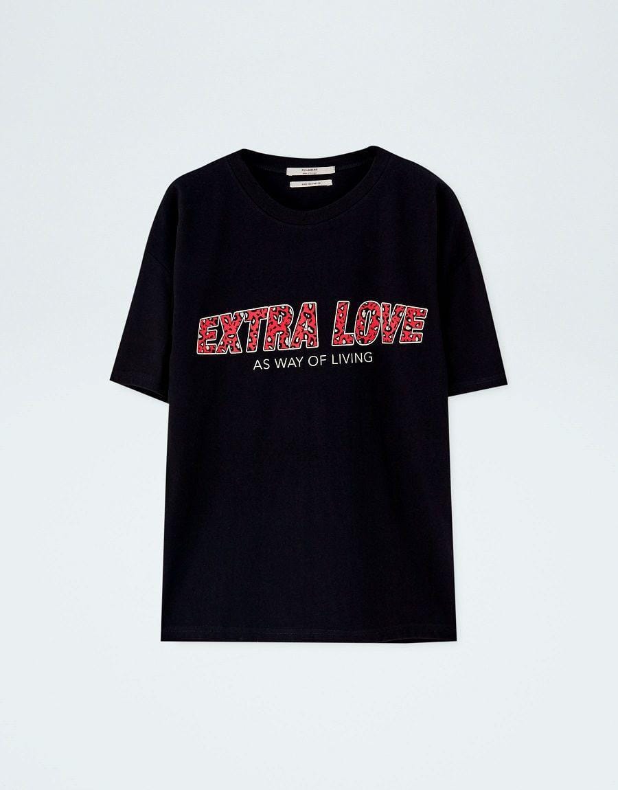 T-shirt with animal print slogan, Pull & Bear, IDR 299,900