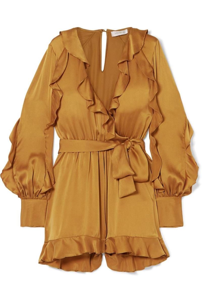 Ruffled silk-satin wrap playsuit, Zimmermann, $483