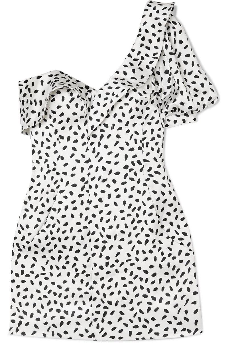 One-shoulder draped printed satin mini dress, Self-Portrait, $307