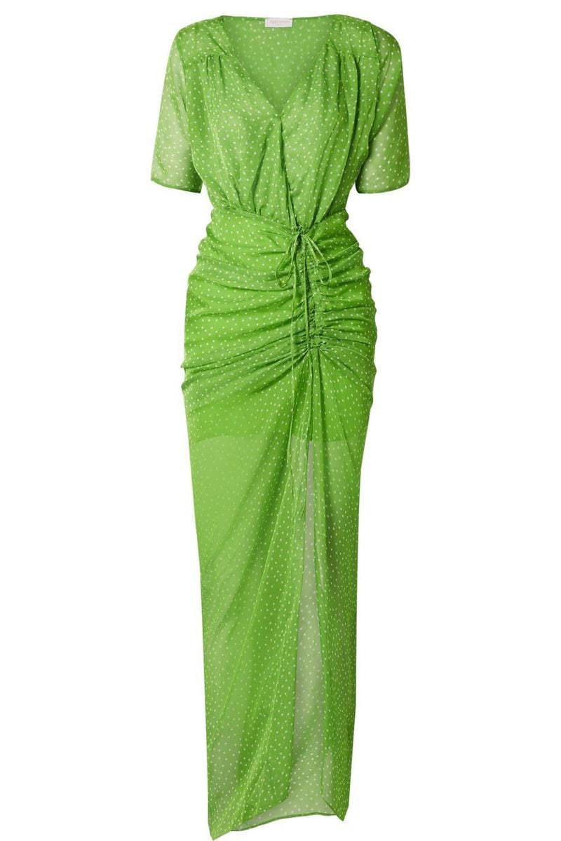 Elke ruched polka-dot chiffon maxi dress, Eywasouls Malibu, $273
