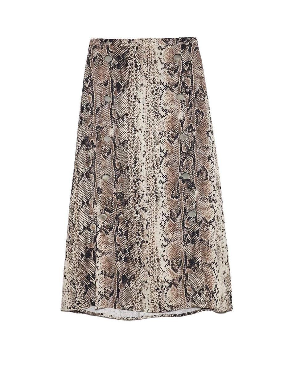 Faux snakeskin double-breasted midi skirt, Stradivarius, IDR 479.900