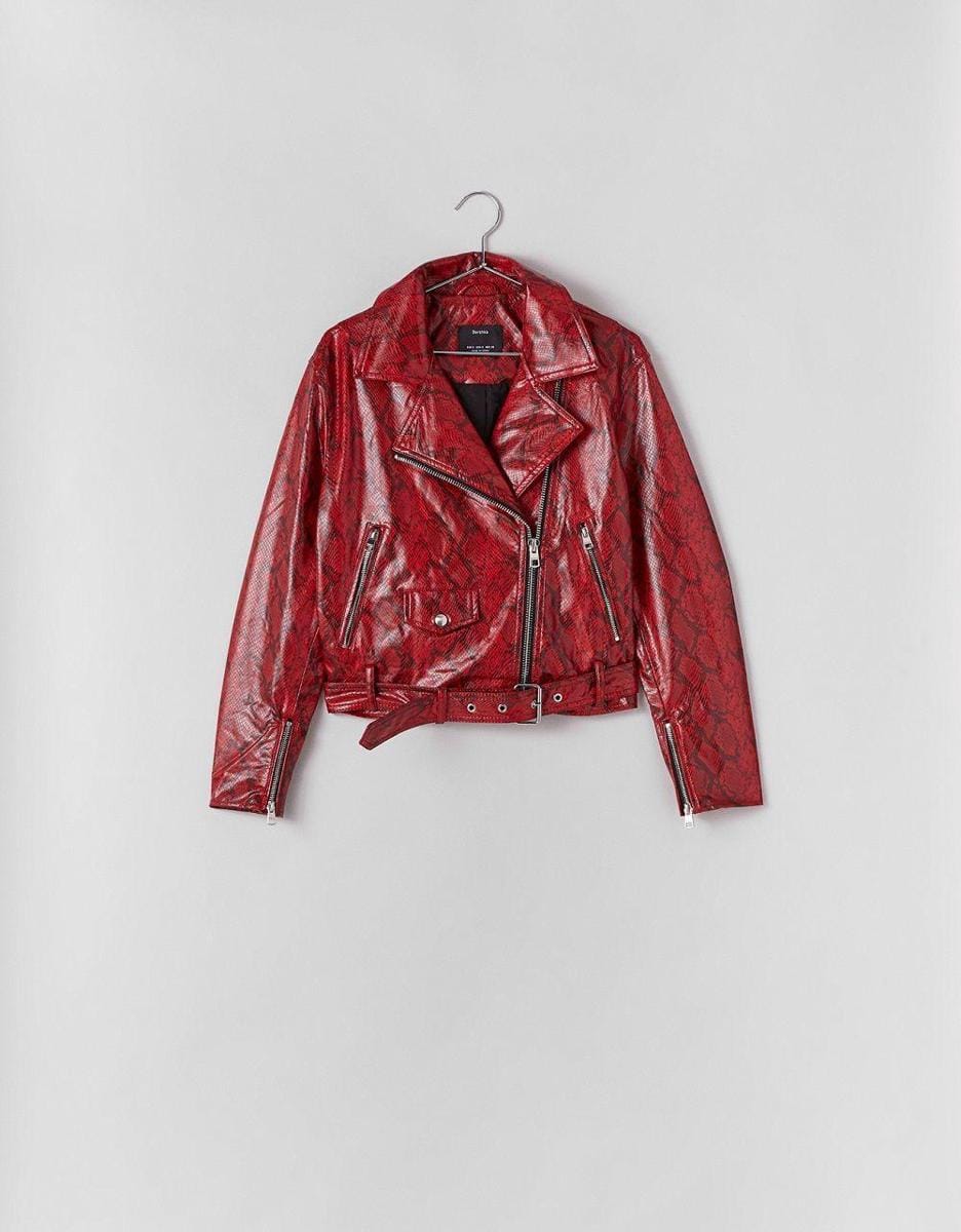 Snakeskin print biker jacket, Bershka, IDR 999,900