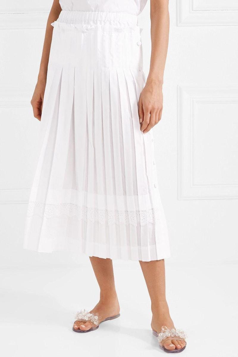 Broderie anglaise-trimmed pleated cotton-poplin midi skirt, Simone Rocha, $624
