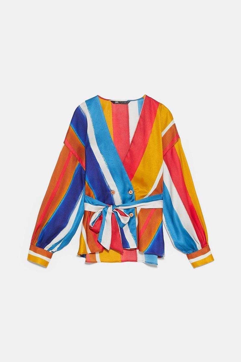 Striped blouse with belt, ZARA, IDR 599,900