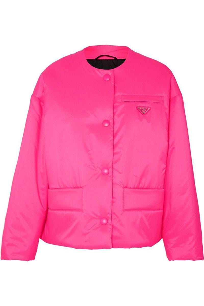 Leather-trimmed neon quilted shell jacket, Prada, $1,062