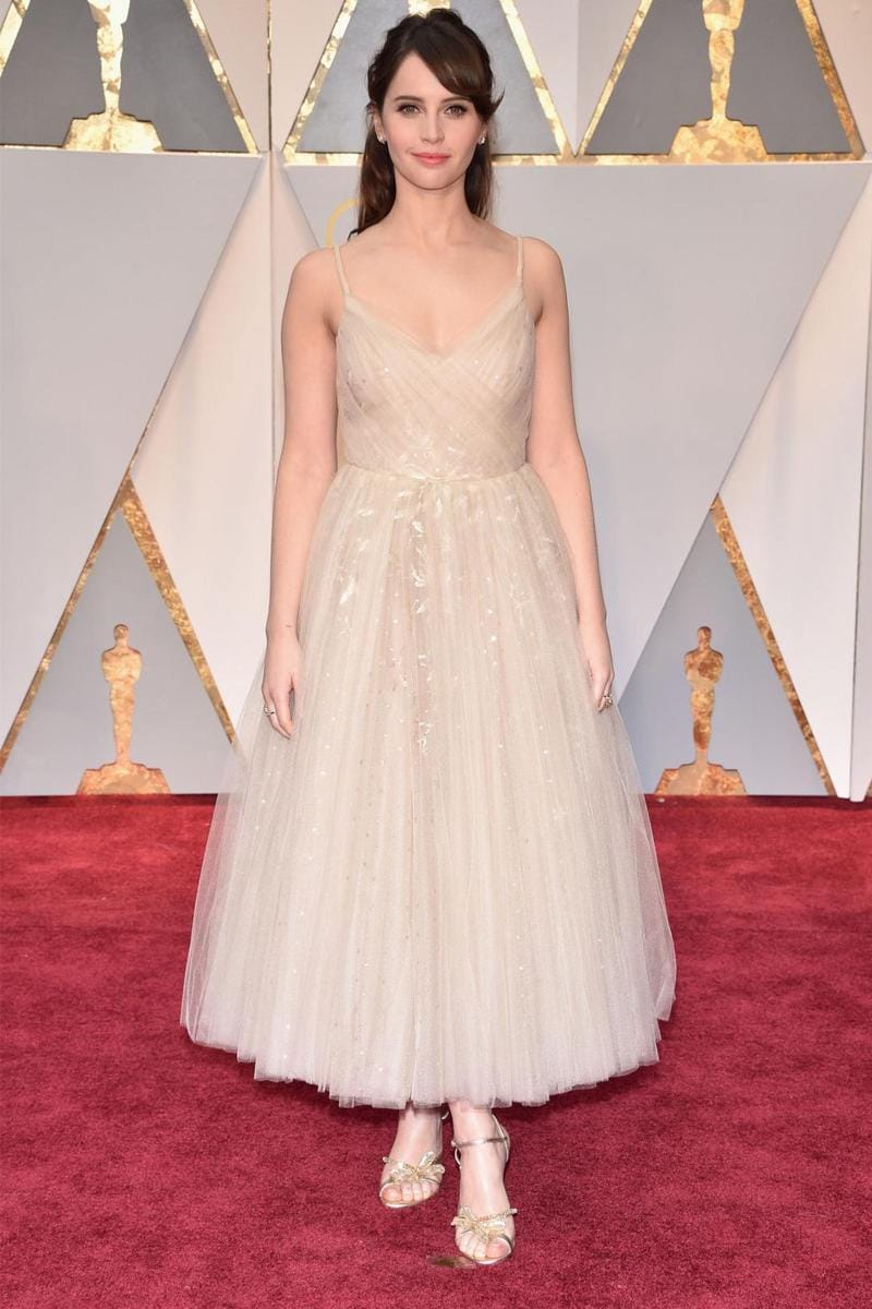 10. Tampil bak princess, nude dress rancangan Dior ini sukses mengantarkan Felicity ke dalam daftar best dress pada Oscar 2017.