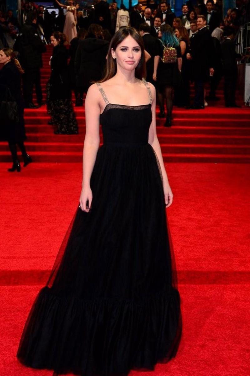 8. Momen BAFTA Film Awards 2017, Felicity terlihat sangat anggun dalam balutan gaun hitam klasik dengan aplikasi tulle.