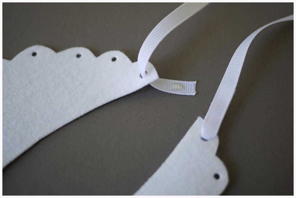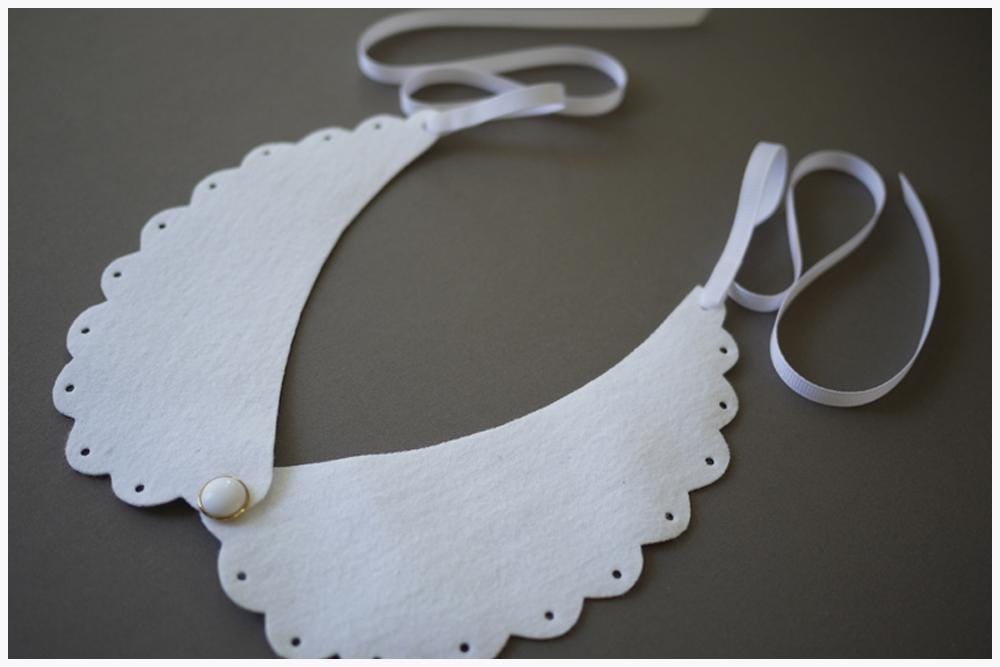 Setelah itu, ambil pita putih dan potong. Lalu masukkan ke dalam lubang terakhir di collarmu tersebut. Kemudian berikan lem, lipat dan tutup.