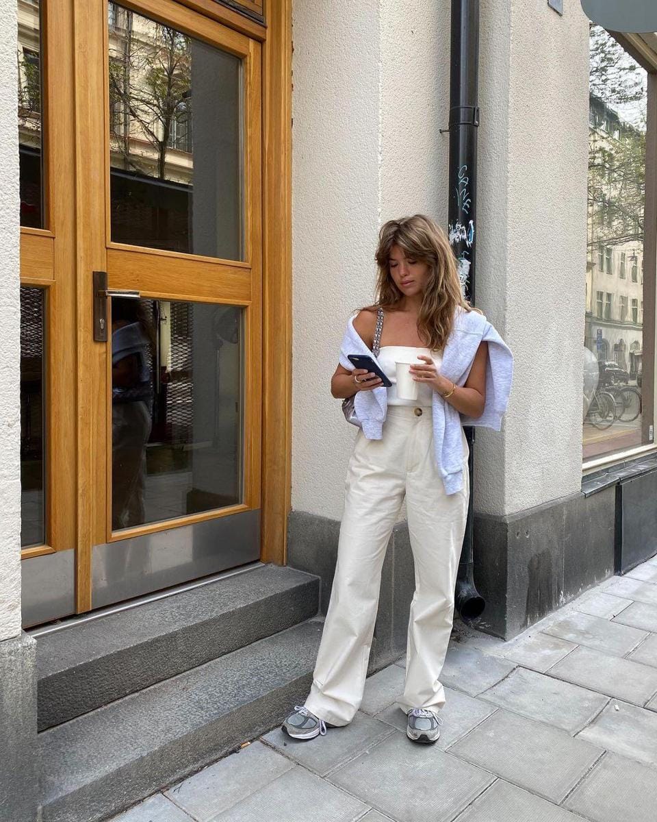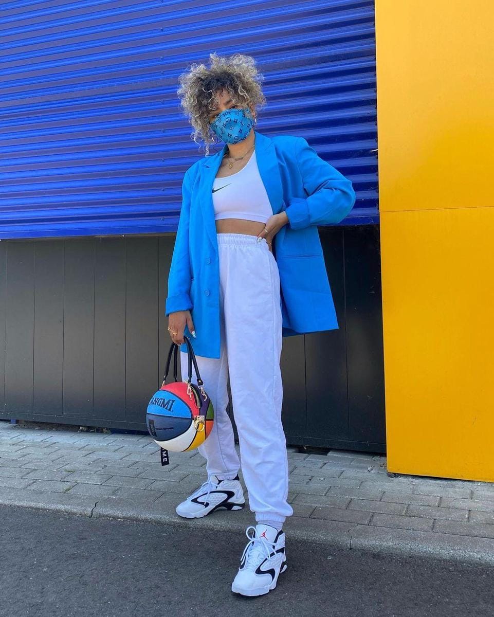 4. Gaya kasual akan berubah 180 derajat jadi makin <i>sporty </i>dengan perpaduan <i>oversized blazer, sport bra, tapered sweats </i>dan sepatu olahraga.